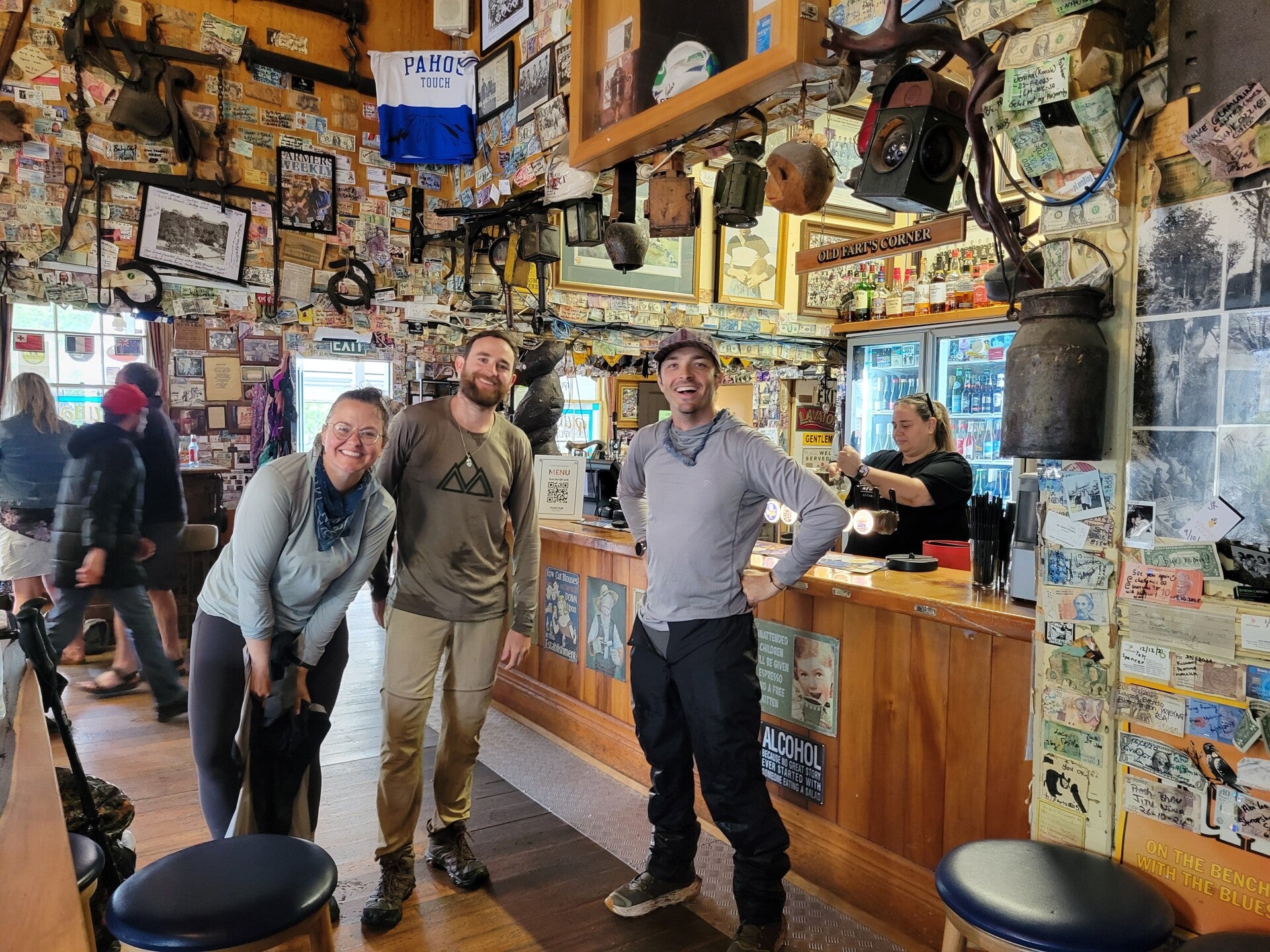 Après cinq bonnes heures de marche nous arrivons au Pub de Puhoi, établissement renommé pour sa bière et alcools en tous genres. La salle principale est recouverte de billets de banque du monde entier qu’attachent les clients aux murs, tradition préservée depuis son ouverture en 1879. Nous buvons quelques verres, prenons notre déjeuner et nous rendons ensuite à la location de kayaks pour la descente de la rivière Puhoi sur 7 kilomètres. L’étrangeté de ce cours d’eau, c’est qu’il se trouve au niveau de la mer, ce qui fait que l’eau douce se mêle à l’eau de mer lorsque la marée est montante. Nous avons besoin d’une marée descendante pour le parcourir, et la gérante s’étant trompée sur les horaires des marées, nous pouvons retourner au Pub pour une autre tournée !