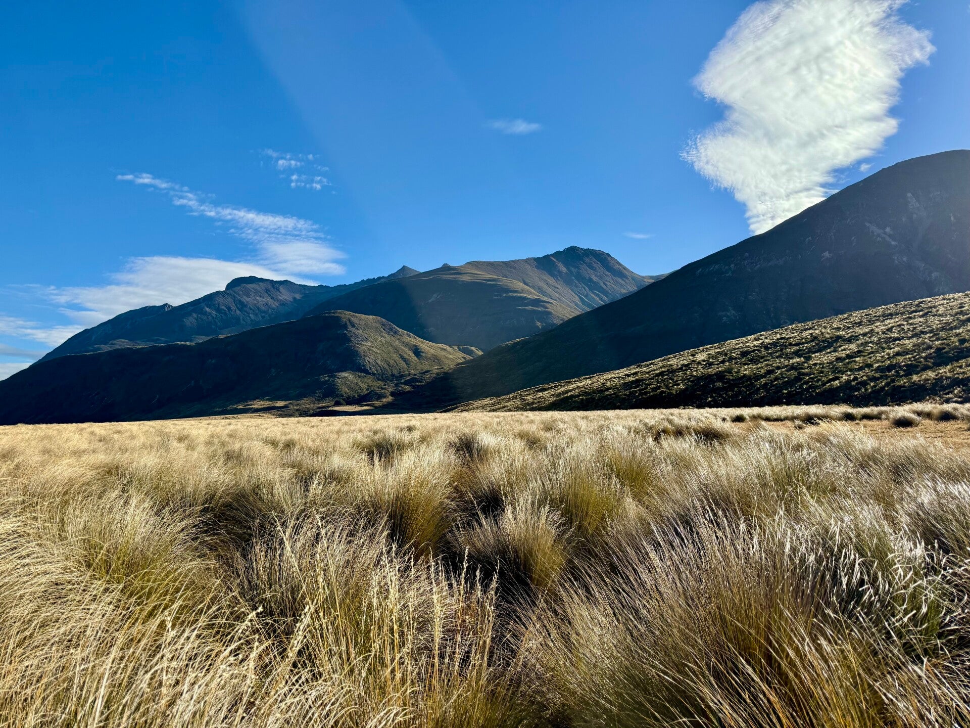 Le lendemain matin, nous commençons à marcher vers 8h et descendons la vallée en pente douce à travers une forêt. Nous avons la chance d’apercevoir subrepticement un Takahe, un oiseau bleuté de la taille d’une poule en voie d’extinction dont l’estimation est seulement d’environ 500 individus.